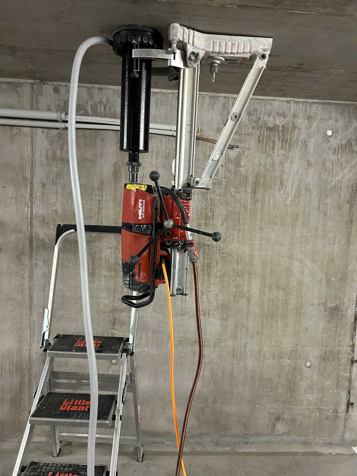 Durch den Einsatz von professionellen Werkzeugen, so genannten Hohlkernbohrern, erreichen wir einen Zerspanungsvorgang bei dem ein zylindrischer Hohlkern aus der bestehenden Arbeitsfläche entfernt wird. Hier wird eine kreisförmige Nut im Baustoff gesetzt, welche durch immer weitere Vertiefung der Nut während des Kernbohrungsvorgangs zum Materialdurchbruch führt. Dieses Kernloch sollte exakt abgemessen und sauber gebohrt sein, um im Nachhinein in der gewünschten Aussparung den exakten Platz für Leitungen und Rohre zu gewährleisten.